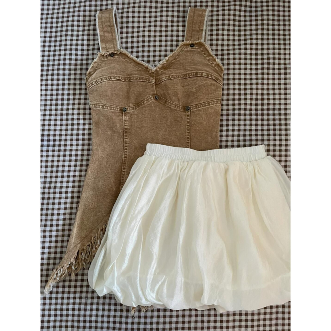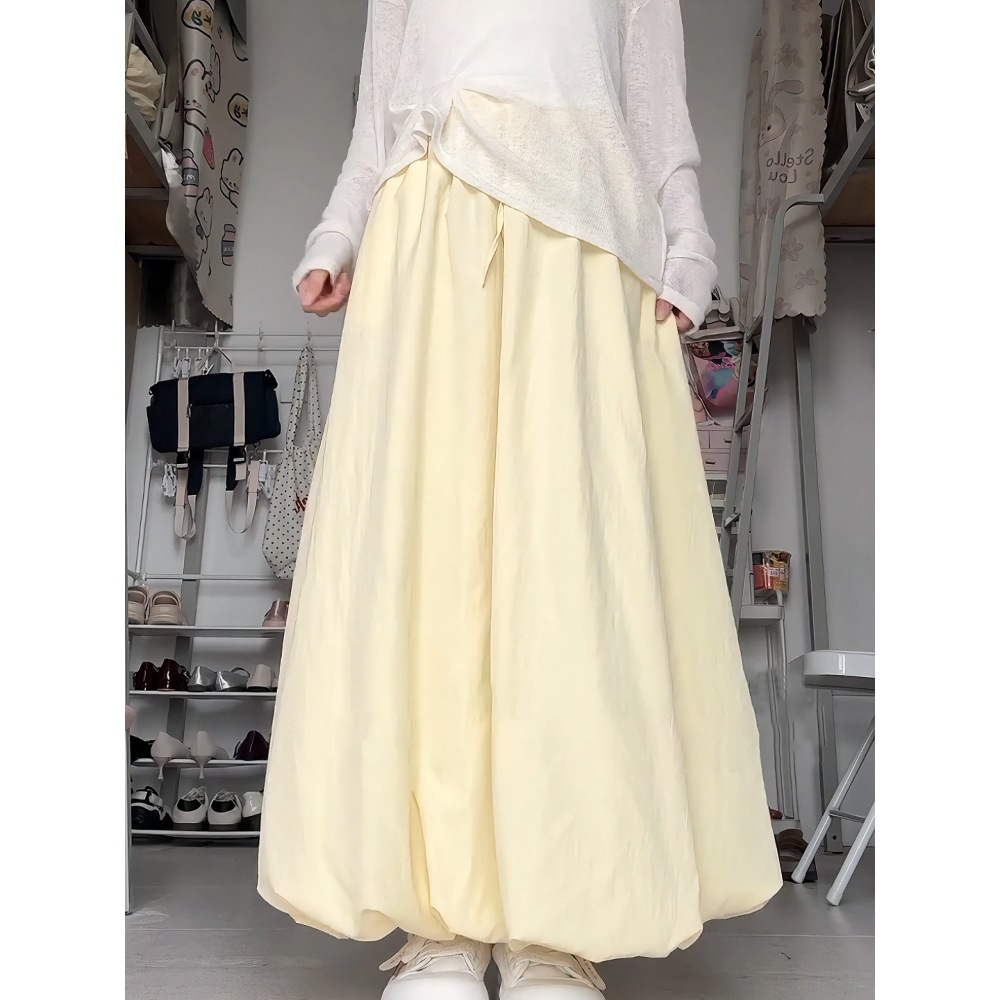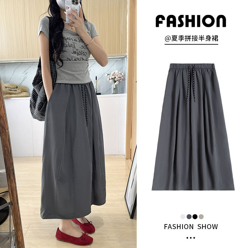 Foto Padat 2024 Rok Lampion Terlihat Langsing Pinggang Tinggi Sambungan Model Baru Musim Panas dan Musim Gugur Rok Setengah Badan Kuncup Ukuran Besar Longgar Tidak Beraturan