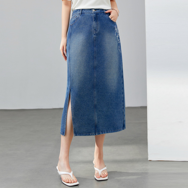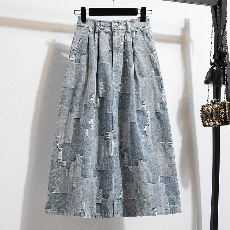 Rok Setengah Badan Denim Gaya Barat Bunga Foto Solid Rok Panjang Sedang Ukuran Besar Gaya Desain Mudah Dipadu Padan Kasual Model Baru Musim Gugur Wanita Katun