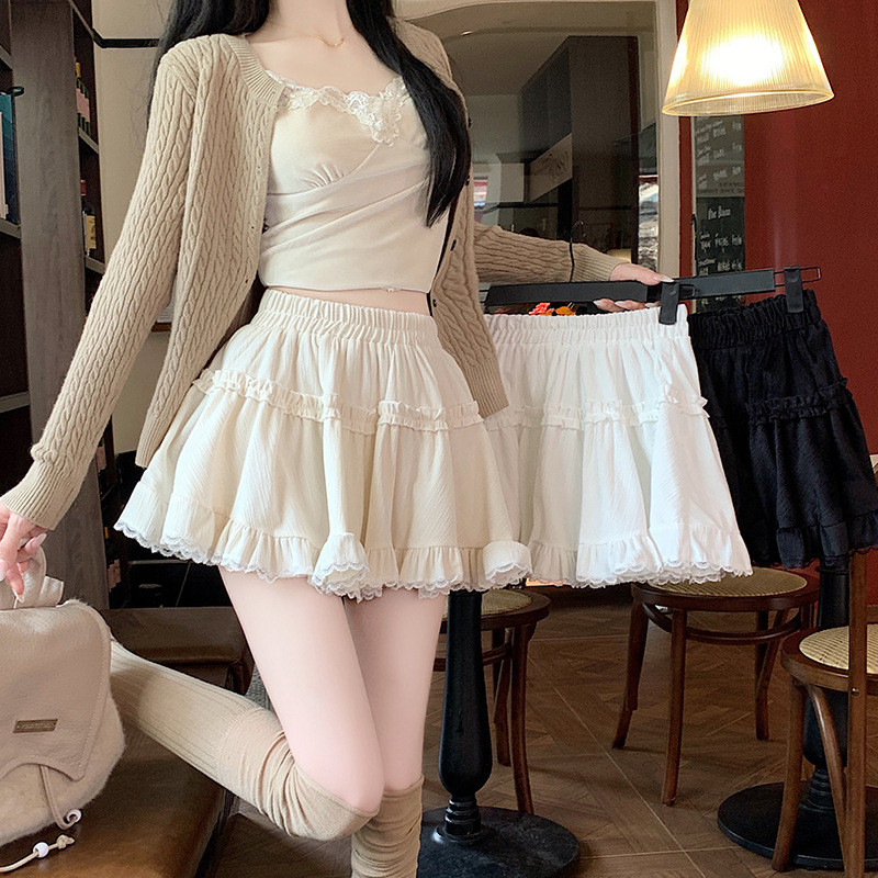 Rok Setengah Badan Gaya Balet Gaya Perancis Ukuran Besar Celana Kulot Kue Tubuh Kecil Berenda Terlihat Langsing Pinggang Tinggi Model Baru Musim Semi dan Musim Panas Wanita