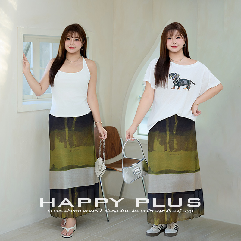 Rok Setengah Badan Model Baru Pakaian Wanita Kasual Ukuran Besar 9207 Kain Jaring Seni Lukisan Minyak Zen