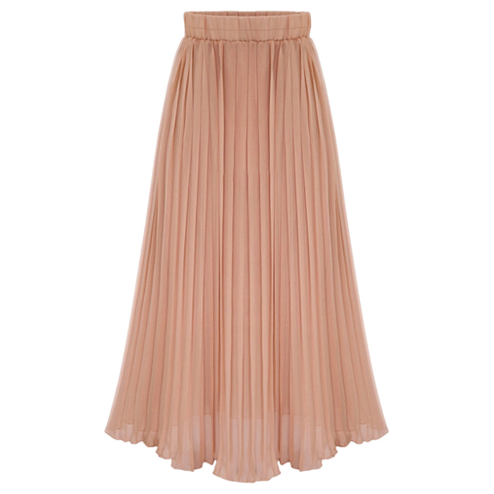 Rok Setengah Badan Lipit Pinggang Tinggi Produk Baru Musim Panas 2025 Rok Panjang Sedang Ayun Besar A-Line Pinggang Elastis Menutupi Ukuran Besar untuk Wanita