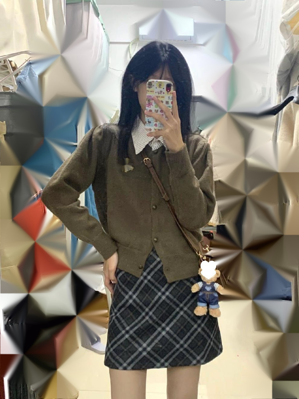 Rok wanita ukuran besar, Rok Wanita gemuk, rok kotak-kotak, rok a-line, rok pendek musim gugur, rok pinggul wanita ukuran besar