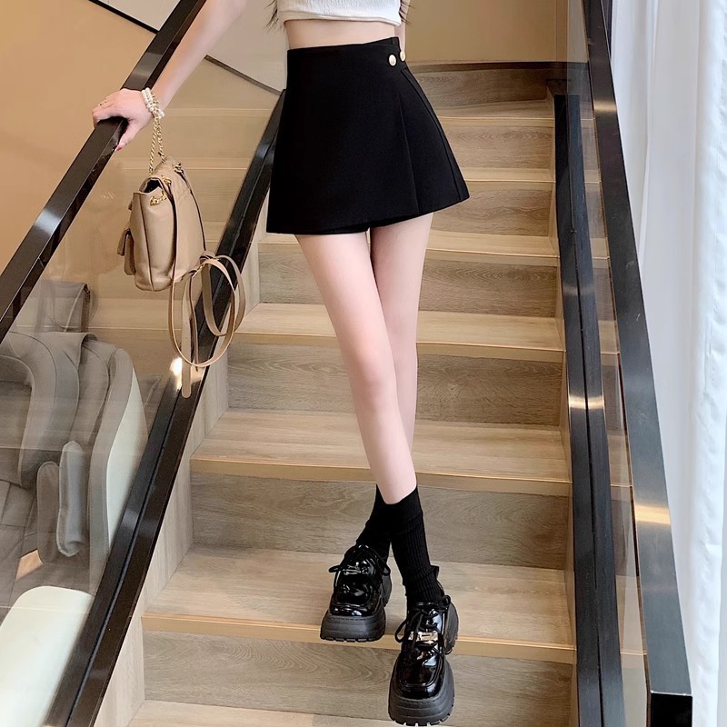 Rok Setengah Badan Terlihat Langsing Pinggang Tinggi Celana Pendek Setelan Komuter Model Tipis Celana Pendek Pakaian Komuter Kasual Musim Panas Wanita Celana Pendek Musim Hitam Ukuran Besar