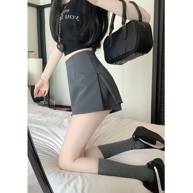 Rok Setengah Badan Setelan Hitam Abu-Abu Rok Pendek Pinggul Pinggang Tinggi Terlihat Langsing Anti-Walking Pinggang Pinggang Tinggi Gaya Desain Musim Panas Wanita