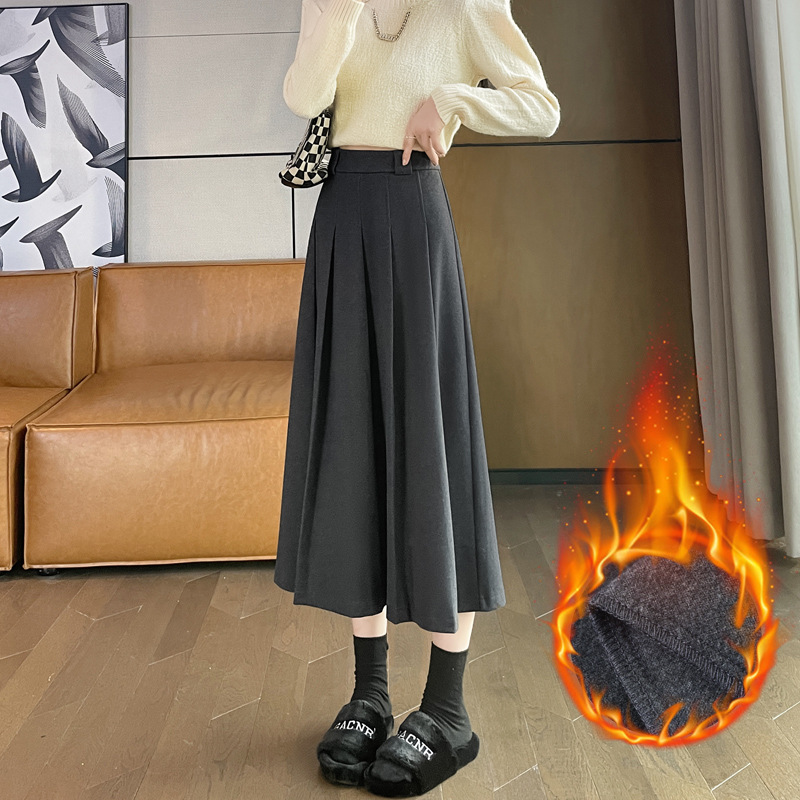 Rok Setengah Badan Sutra Cerah Wol Gaya Kecil Rok A-Line Terlihat Langsing Pinggang Tinggi Model Musim Gugur Musim Dingin Rok Panjang Sedang Satu Langkah Membungkus Pinggul