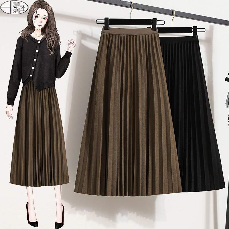 Rok lipit model a-line untuk wanita, rok panjang bentuk pir pinggang tinggi, Rok lipit ramping a-line musim semi dan musim dingin 2022, pakaian wanita ukuran Plus