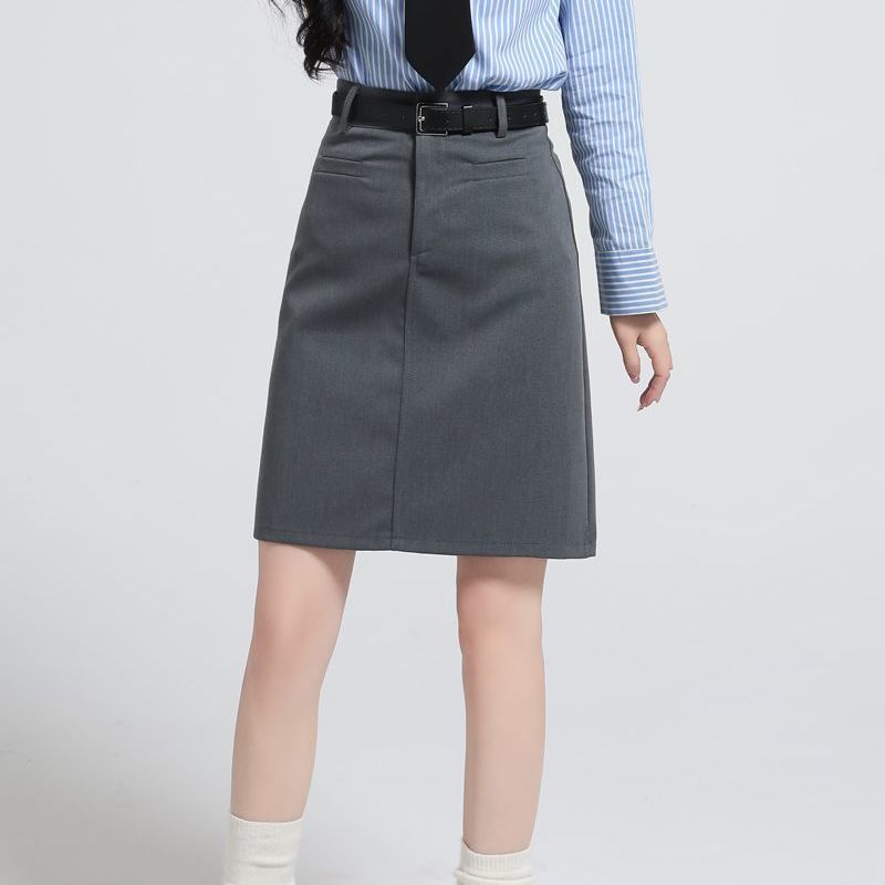 Rok Setengah Badan Warna Abu-abu Musim Semi Musim Panas Rok Menutupi Pinggul Satu Langkah Terlihat Kurus Menutupi Pinggang Tinggi Ukuran Besar Wanita Rok Pendek A-Line Mudah Dipadu Padan