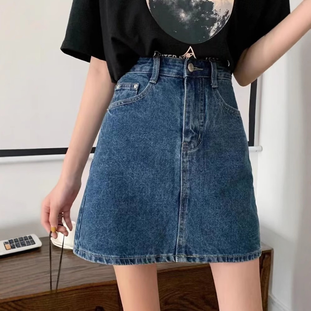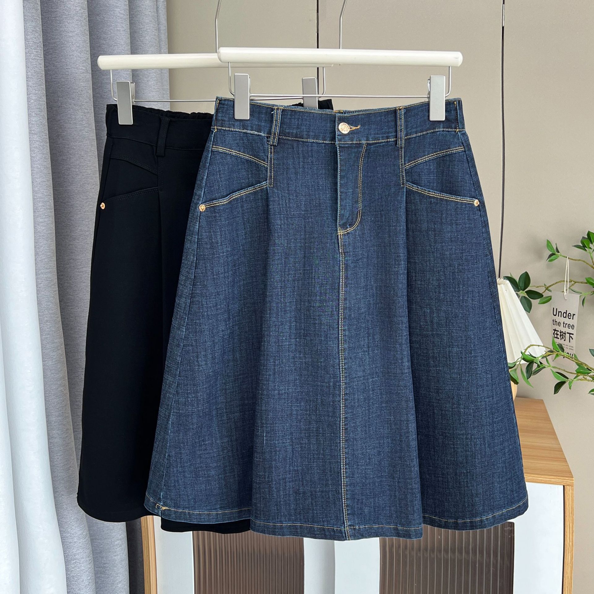 Rok Denim Huruf A Menutupi Daging Modis Kasual Model Baru Musim Panas Ukuran Besar Rok Sedang Mudah Dipadu Padan Wanita Gemuk 200Kg 7452