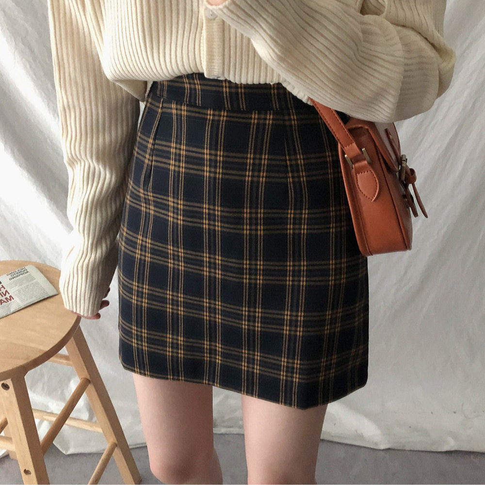 Pakaian Wanita Ukuran Besar Rok Setengah Badan Kotak-Kotak Merah Muda Gaya Korea Ketat Rok Panjang Artistik Terlihat Langsing Elegan Model Setengah Panjang Pinggang Tinggi Mudah Dipadu Padan