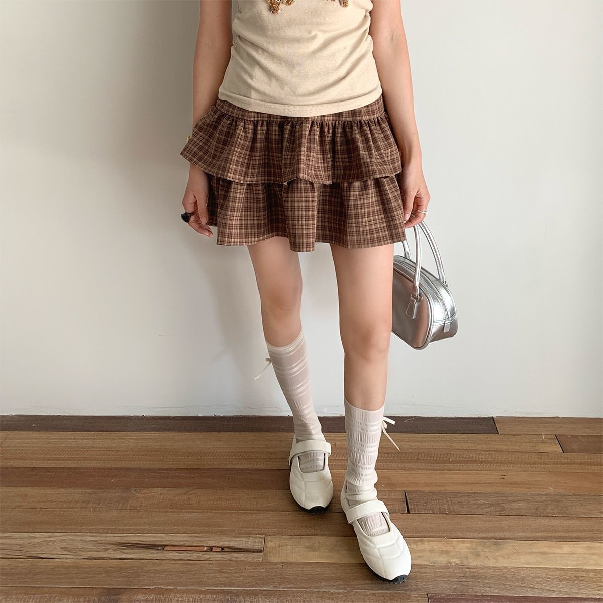 Rok Pendek Kue Daun Teratai Retro Gaya Korea Model Baru Ukuran Besar Rok Setengah Badan Pinggang Tinggi Model Awal Musim Semi 2025 Wanita