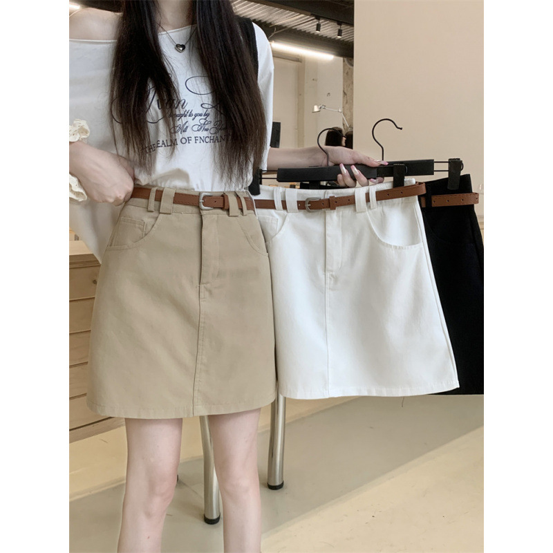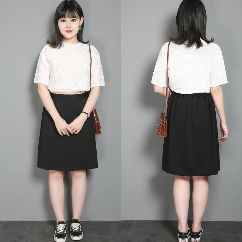 Setelan Rok Setengah Badan Ukuran Besar Pinggang Tinggi Model Baru Musim Panas Anti Cahaya Menutupi Terlihat Kurus Kasual Mudah Dipadu Padan Rok Pendek Huruf A
