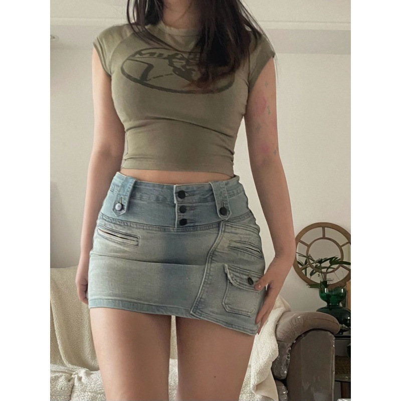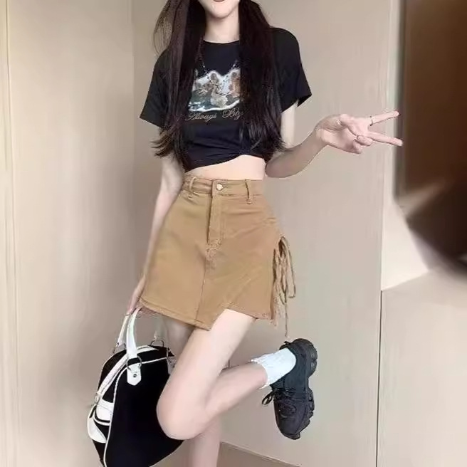 Gadis Pedas Rok Setengah Badan Denim Bercabang Musim Panas 2025 Model Baru Pinggang Tinggi Menutupi Pinggul Anti Tercahaya Rok Pendek Ukuran Besar Pakaian Wanita