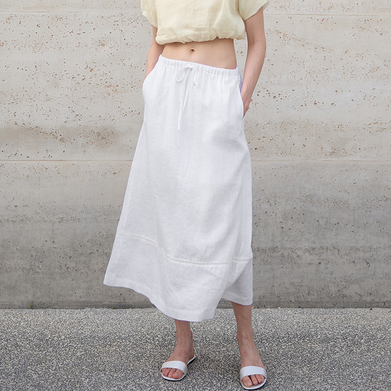 Rok Setengah Badan Warna Putih Linen Gaya Premium Rok A-Line Kombinasi Musim Panas Wanita Rok Lurus Longgar Rok Setengah Panjang