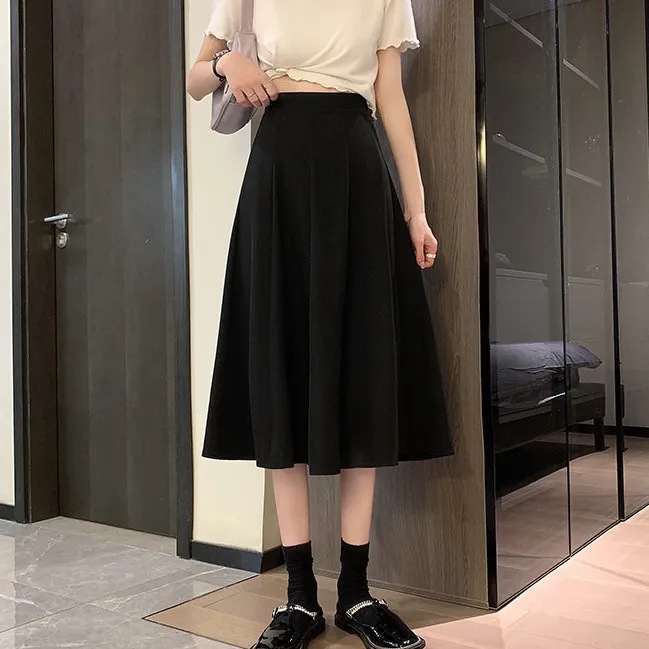 Rok wanita Korea, Rok lipit model Korea hitam, rok pelangsing pinggang tinggi, Rok lipit model A- line baru, musim semi 2024