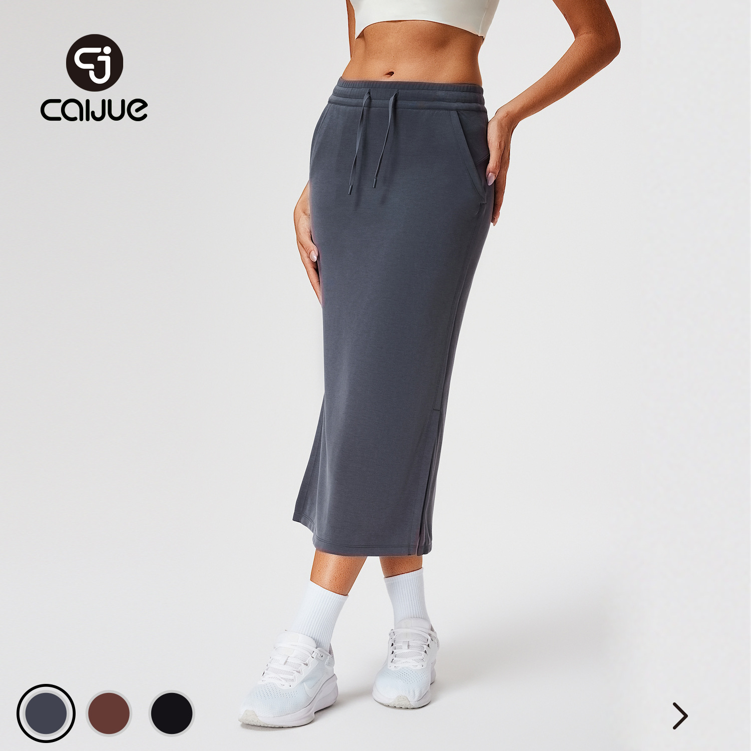 Gaya yang sama seperti Cai Jue Lu: Rok midi berpotongan ramping, potongan lurus yang menempel di pinggul, pinggang elastis dengan tali serut, rok setengah badan serbaguna yang menutupi bokong untuk wanita.