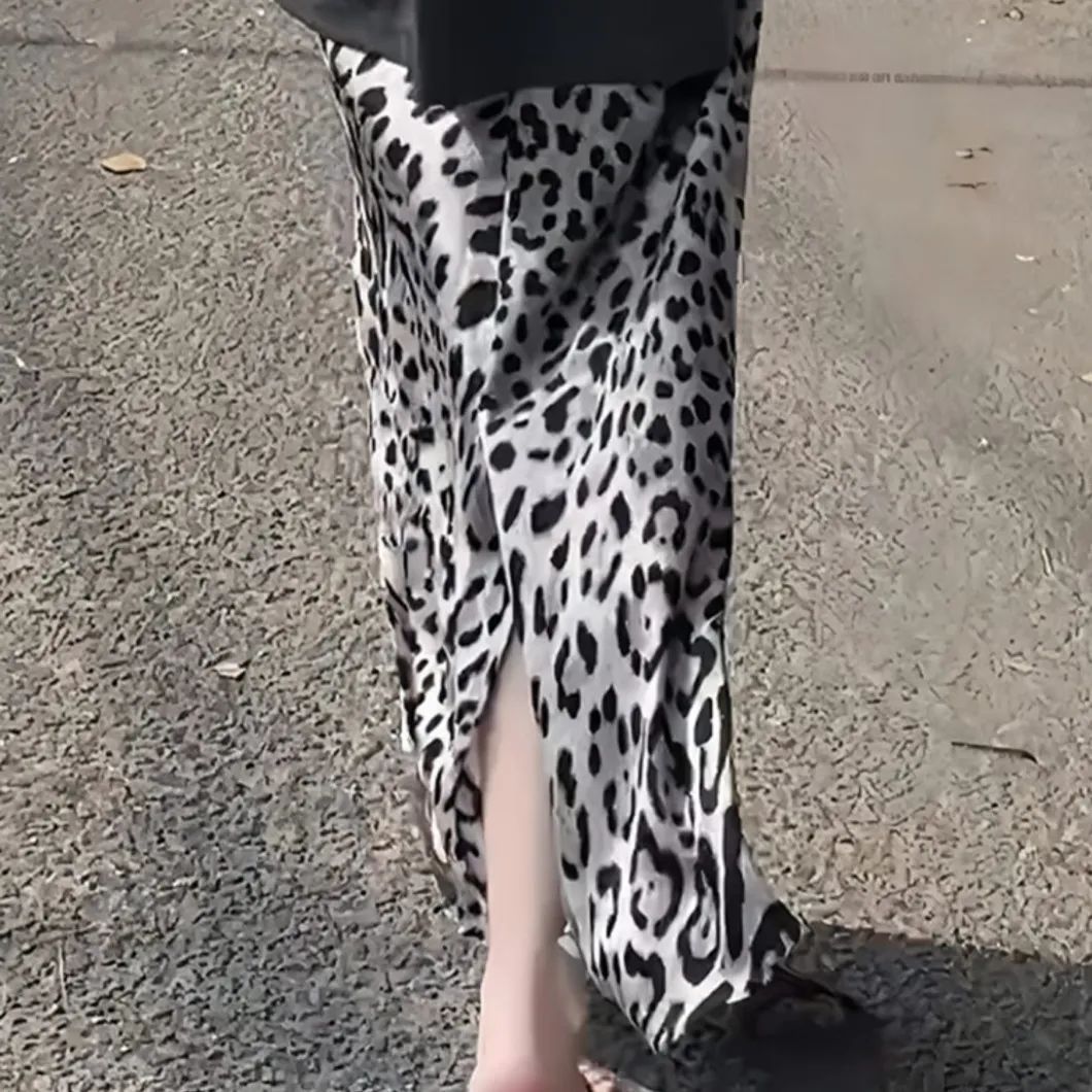 Rok Setengah Badan Bercabang Modis Pola Macan Tutul Rok Panjang Ukuran Besar Senior Terlihat Langsing Pinggang Tinggi Populer Tahun Ini Model Baru Musim Panas 2025 Wanita