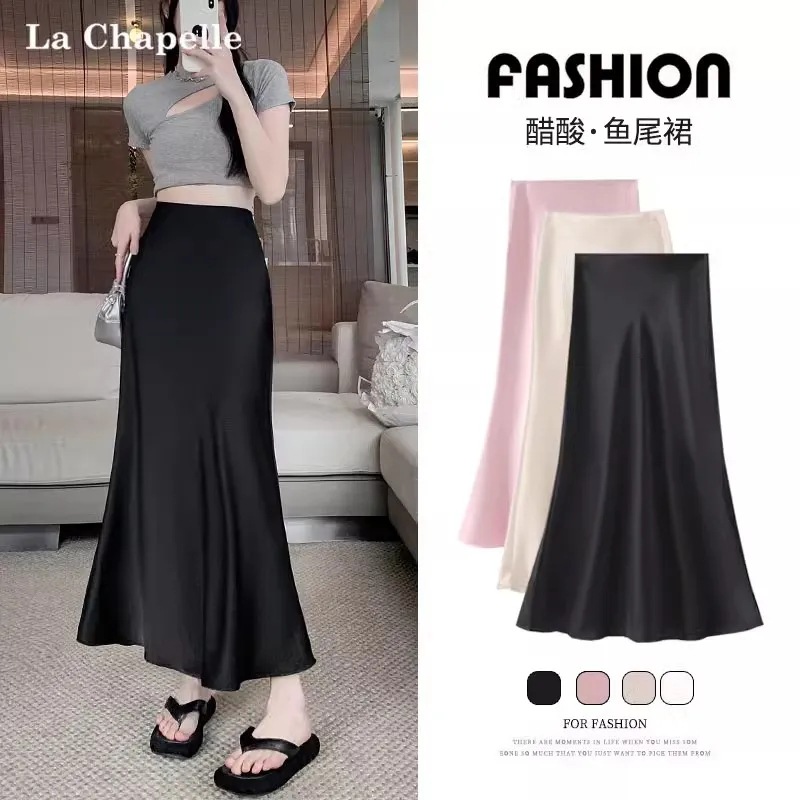 Rok Setengah Badan Satin Asam Asetat Ukuran Besar Rok Ekor Ikan Menutupi Perut Terlihat Langsing Pinggang Tinggi Wanita Gemuk Model Baru Musim Panas Rok A-Line