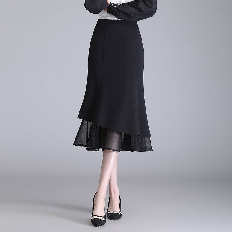 Rok tas rok retro Prancis, Fishtail, rok panjang setengah pinggang tinggi, rok kasa jahitan sedikit lemak musim gugur dan musim dingin, baru, 2023
