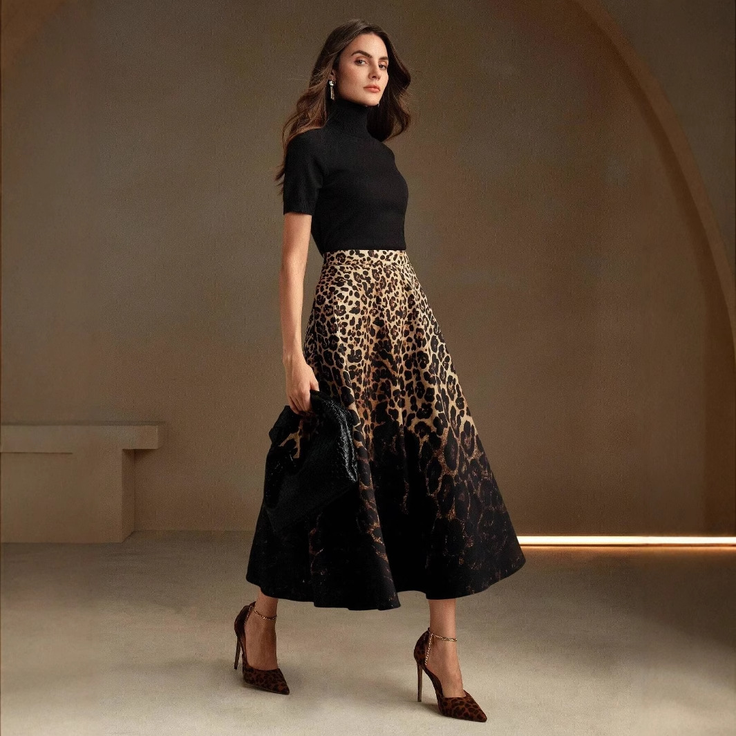 Cross-border rok sifon wanita, bawahan cetakan macan tutul tidak teratur satu potong F6202