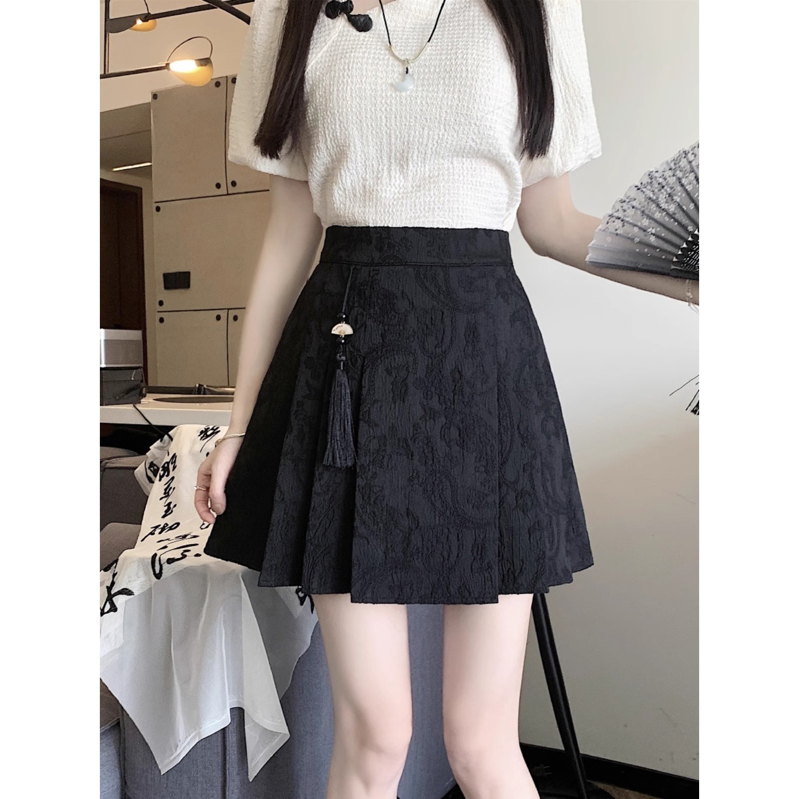 Rok Pinggang Tinggi Terlihat Kurus Rok Lipit Ukuran Besar A3880 Rok Setengah Badan Model Pendek Gaya Tiongkok Gaya Tionghoa Baru Musim Panas