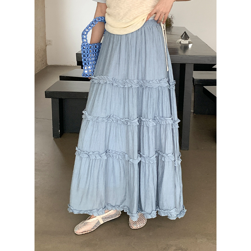 Yier Atasan Peduli Rok Super Besar Gaya Korea Cantik Rok Setengah Badan Model Panjang Sedang Rok Kue Lembut Pinggang Tinggi Wanita 0368