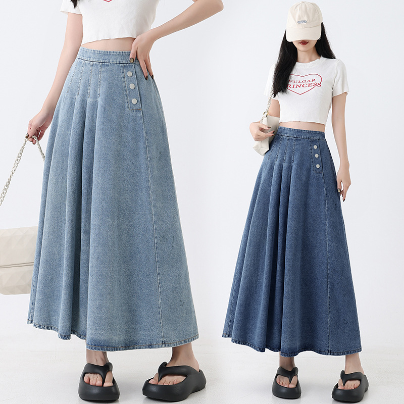 A-line rok Denim wanita setengah panjang ukuran besar pinggang tinggi rok kecil musim panas rok payung wanita grosir