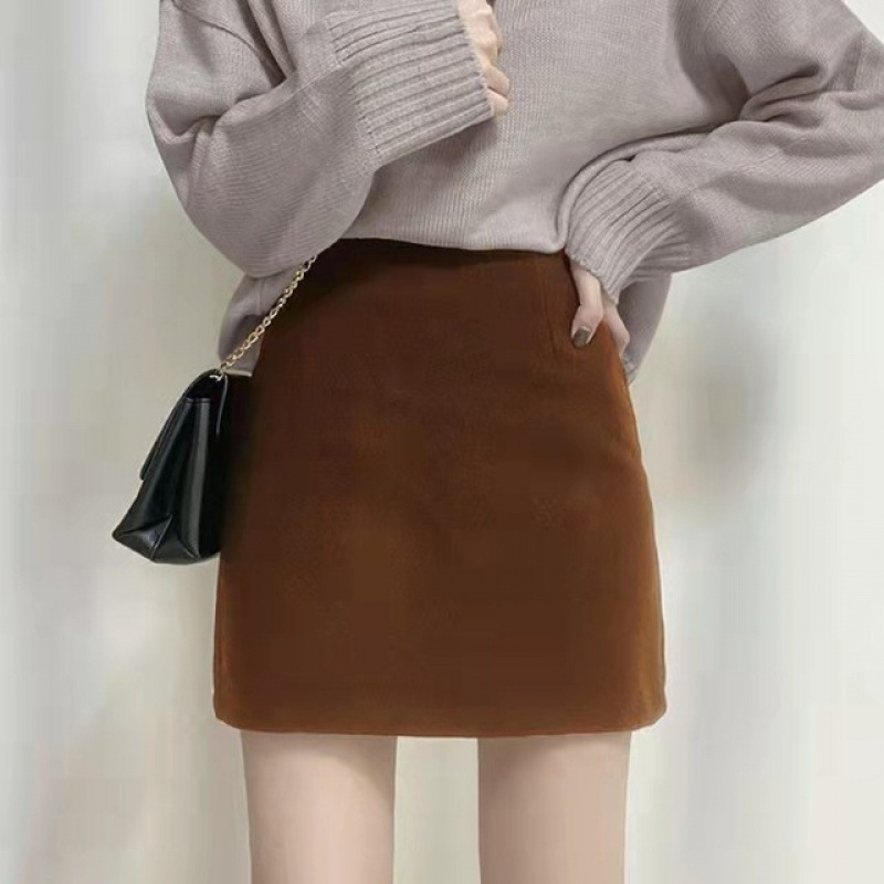 Rok Setengah Badan Wol Rok Pendek Pinggang Tinggi Awal Musim Semi Model Baru Wanita Gemuk Ukuran Besar Terlihat Kurus dengan Sweter Rok Pinggul Rok Huruf A
