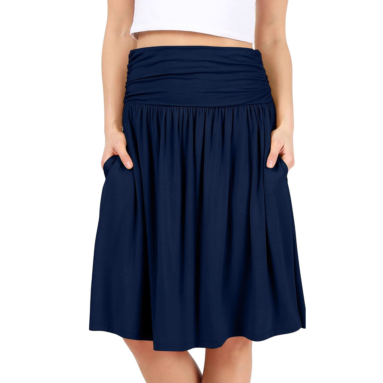 Rok wanita ukuran reguler dan ekstra besar rok setengah badan dengan hiasan lipit rok model setengah panjang