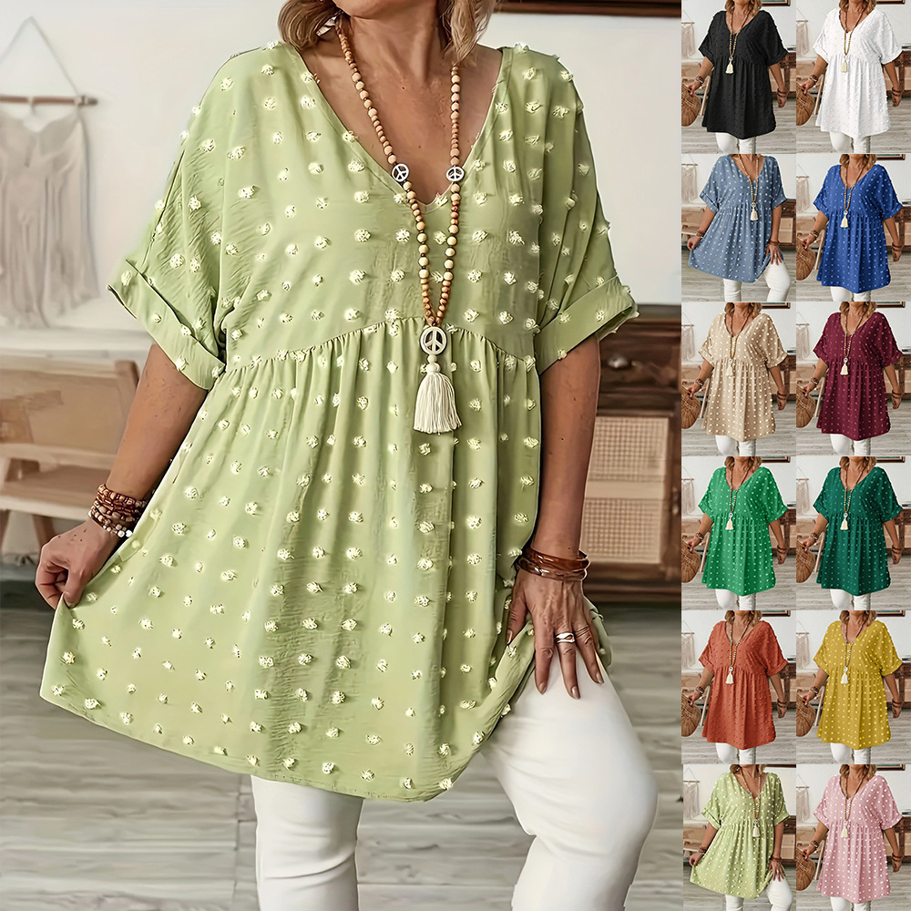 Pakaian Wanita Ukuran Besar Rok Setengah Badan Berhiasan Bola Bulu Atasan Kerah V Gaya Elegan
