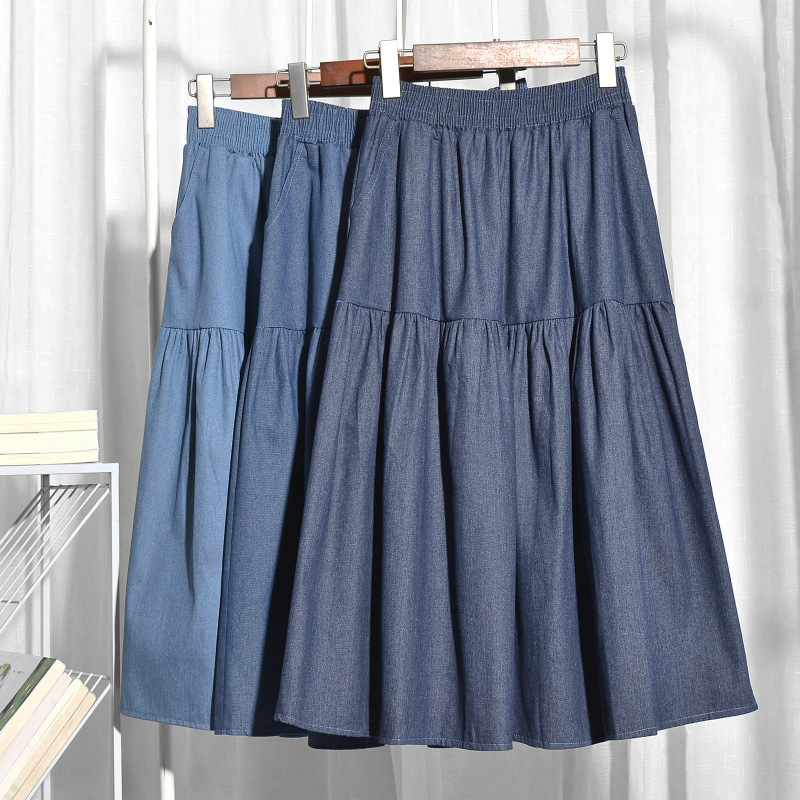 Rok Denim wanita kecil setengah panjang gaya a gadis gemuk, rok 2024 bentuk pir musim panas ukuran plus