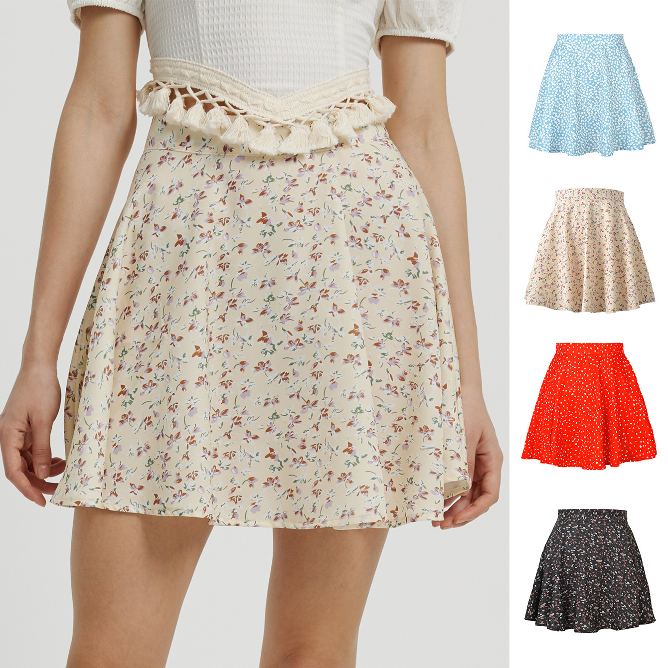 Pakaian Wanita Musim Panas Rok Setengah Badan Pinggang Tinggi Mudah Dipadu Padan Gaya Menjuntai Ramping Liburan Pantai Motif Bunga Segar dan Segar Rok Panjang Gaya Lembut