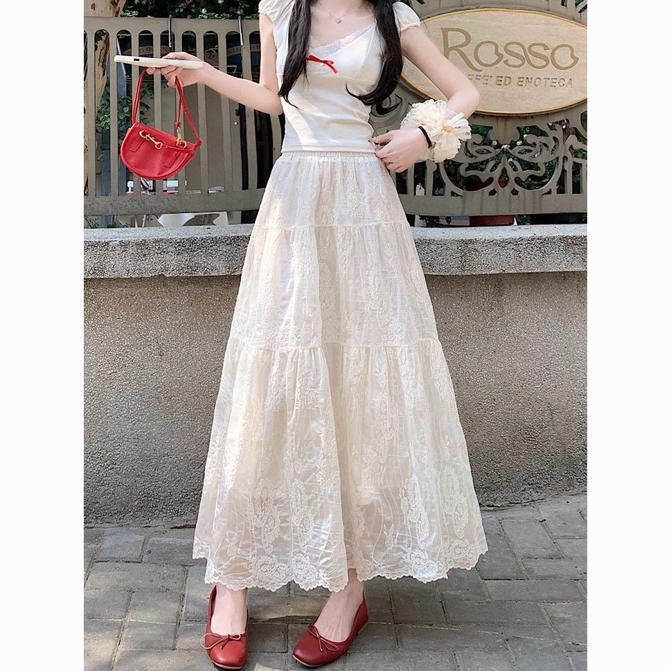 Rok Setengah Badan Sambungan Renda Bordir Jacquard Manis Rok Wanita Panjang Sedang Terlihat Langsing Pinggang Tinggi Wanita Gemuk Model Baru 2025 Musim Panas