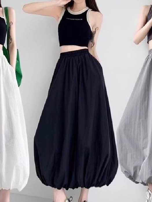 Rok Pendek Huruf A Warna Solid Mudah Dipadu Padan Modis Rok Celana Panjang Anti Tercahaya Ukuran Besar Model Baru Musim Semi Musim Panas Wanita Rok Setengah Badan Pinggang Tinggi