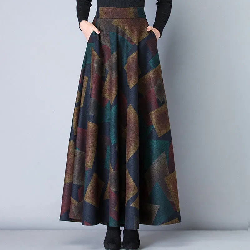 Rok wanita musim dingin ukuran besar, pakaian musim dingin wanita, rok panjang, rok setengah panjang, pakaian musim gugur, rok a-line, rok musim gugur, ukuran plus, baru