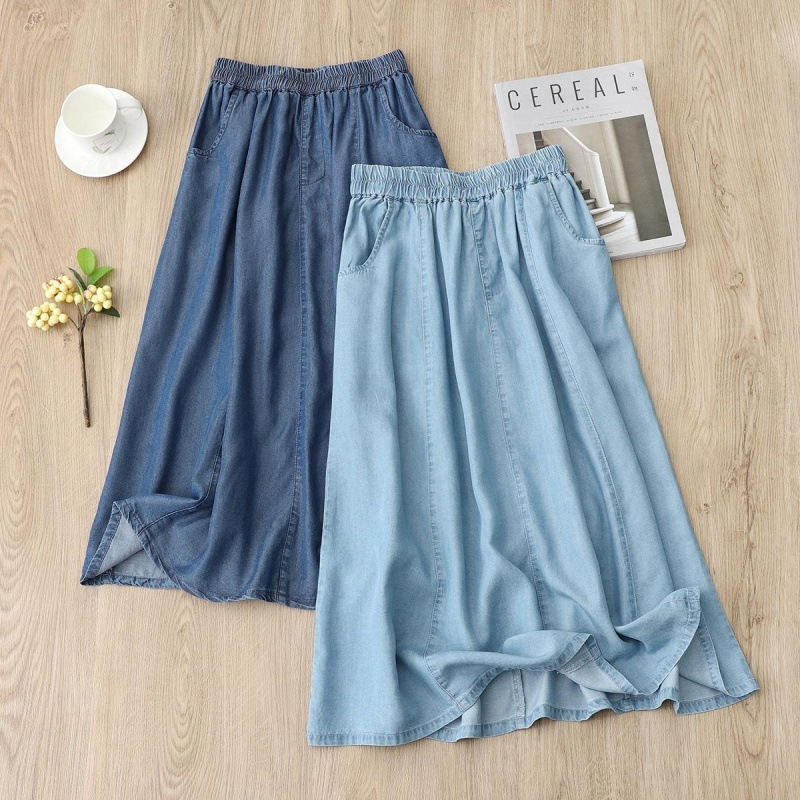 Rok Denim Tisi Rok Setengah Badan Ukuran Besar Tipis Model Baru Musim Panas Rok Huruf Elat Pinggang Tinggi Terlihat Langsing Longgar Versi Korea