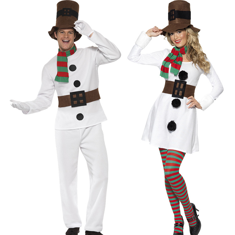 Zhu Mi Lian kostum Natal pasangan, kostum seragam manusia salju putih, kostum penampilan panggung, kostum menggoda, kostum natal pasangan, manusia salju putih