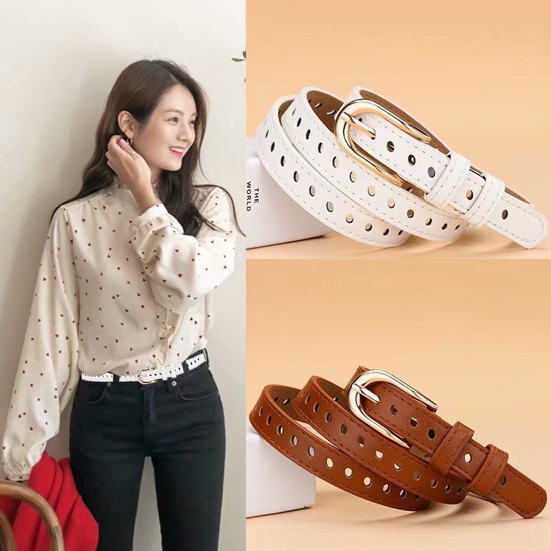 Sabuk celana jins wanita, sabuk tipis gaya Korea, serbaguna, mahasiswa, sabuk hollow-out, sabuk bebas mode musim panas, sabuk celana jeans