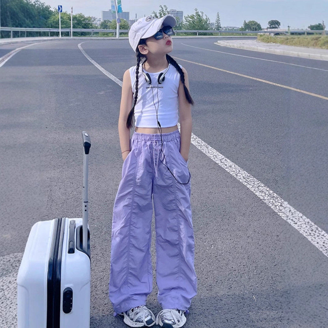 Celana Anak Perempuan Model Tipis Musim Panas 2025 Celana Kerja Sutra Es Anak Usia Sedang dan Besar Model Baru Celana Anti Nyamuk Anak-anak Celana Cepat Kering Pelajar