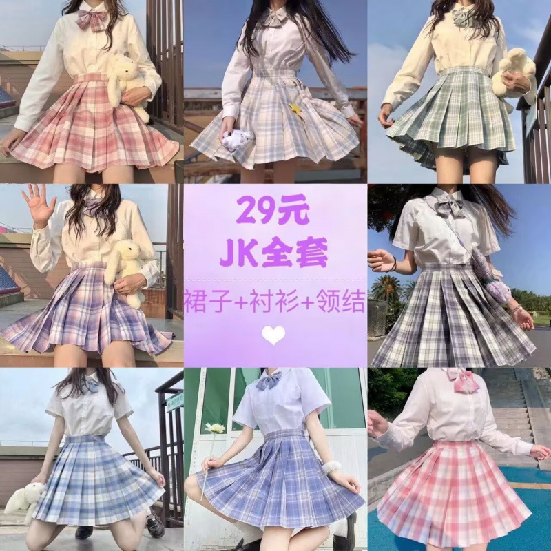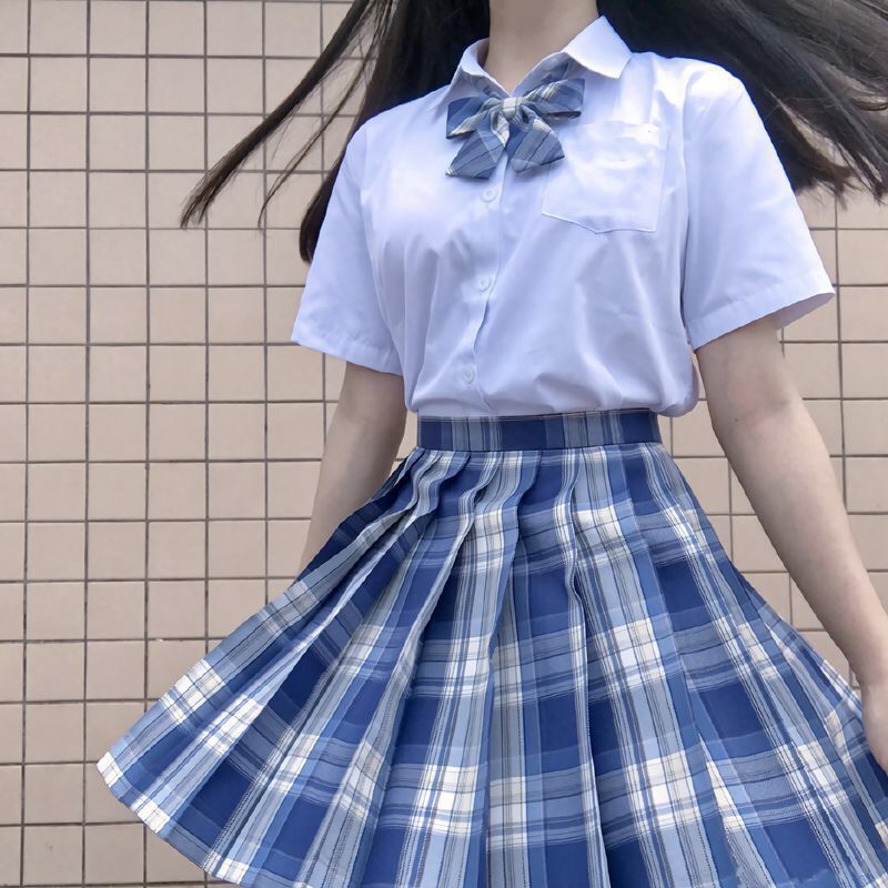 Setelan seragam sekolah gaya preppy Inggris setelan kemeja siswa sekolah menengah pertama rok berlipat seragam kelas reduksi gaun chorus rok panjang