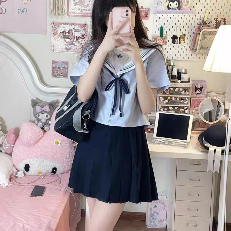 2025 Pakaian pelaut Asli Jepang JK Seragam Atasan Lengan Pendek Kerah Angkatan Laut Manis dan Lucu Gaya Sekolah Rok Lipit