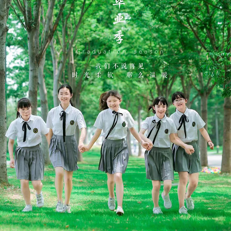 Celana pendek kelas dasar dan sekunder, kemeja seragam sekolah warna abu-abu, celana selutut hitam, pakaian gaya Inggris untuk pria dan wanita musim panas