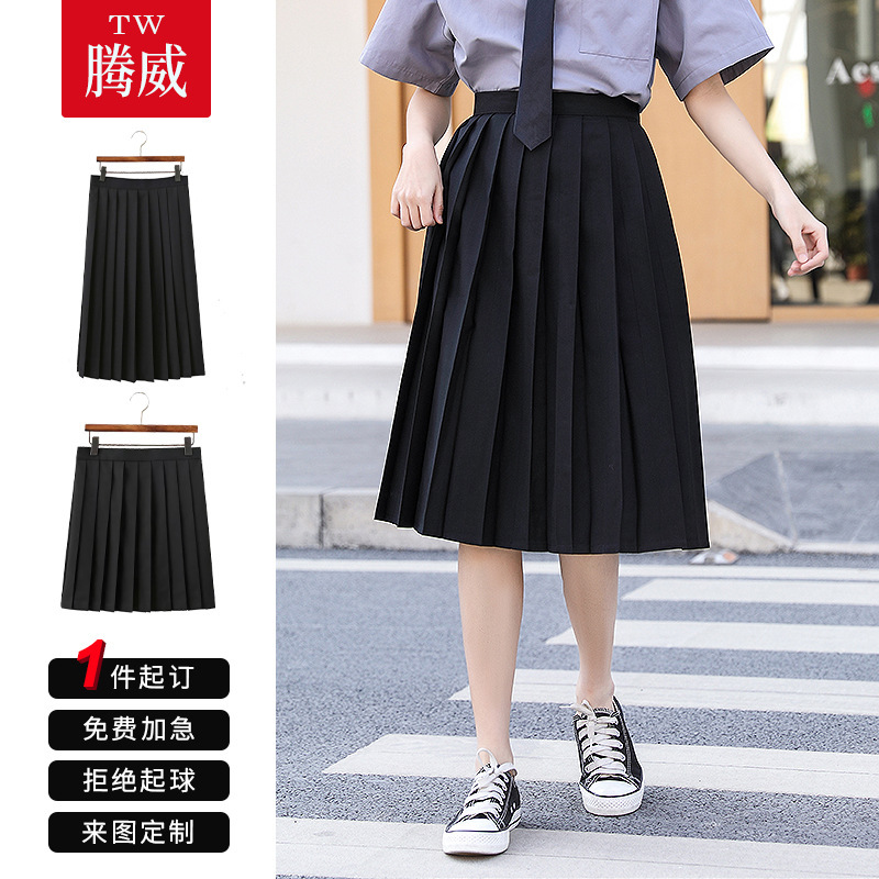 Rok seragam jk dasar rok berlipat hitam baru musim panas pelajar gaya kuliah Jepang rok panjang sedang