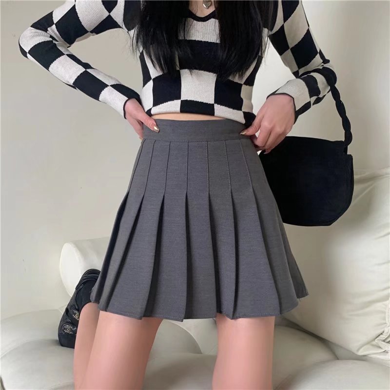 Rok berlipat 2024 baru musim panas wanita pinggang tinggi warna abu-abu setelan Musim Semi jk1934 rok pendek baru musim panas