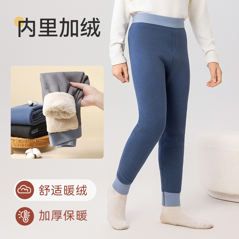 德绒男童保暖裤儿童内穿棉毛裤中大童线裤男孩棉裤校服神裤秋冬