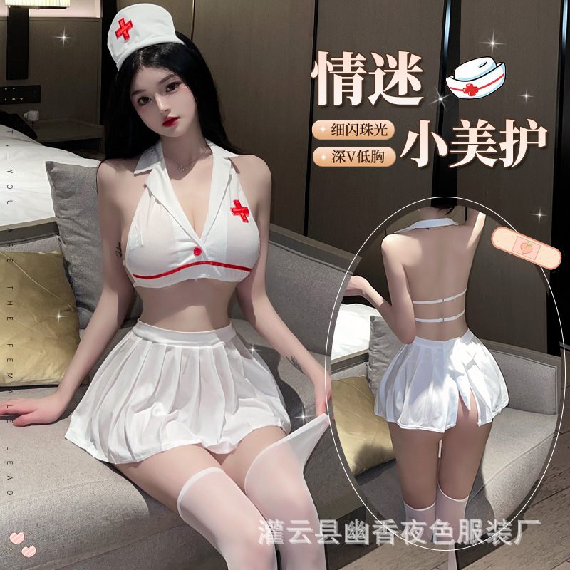 Lin Lin Ting seragam perawat pakaian dalam seksi jk setelan menggoda mainan peran keinginan murni ukuran besar bebas dari 2663