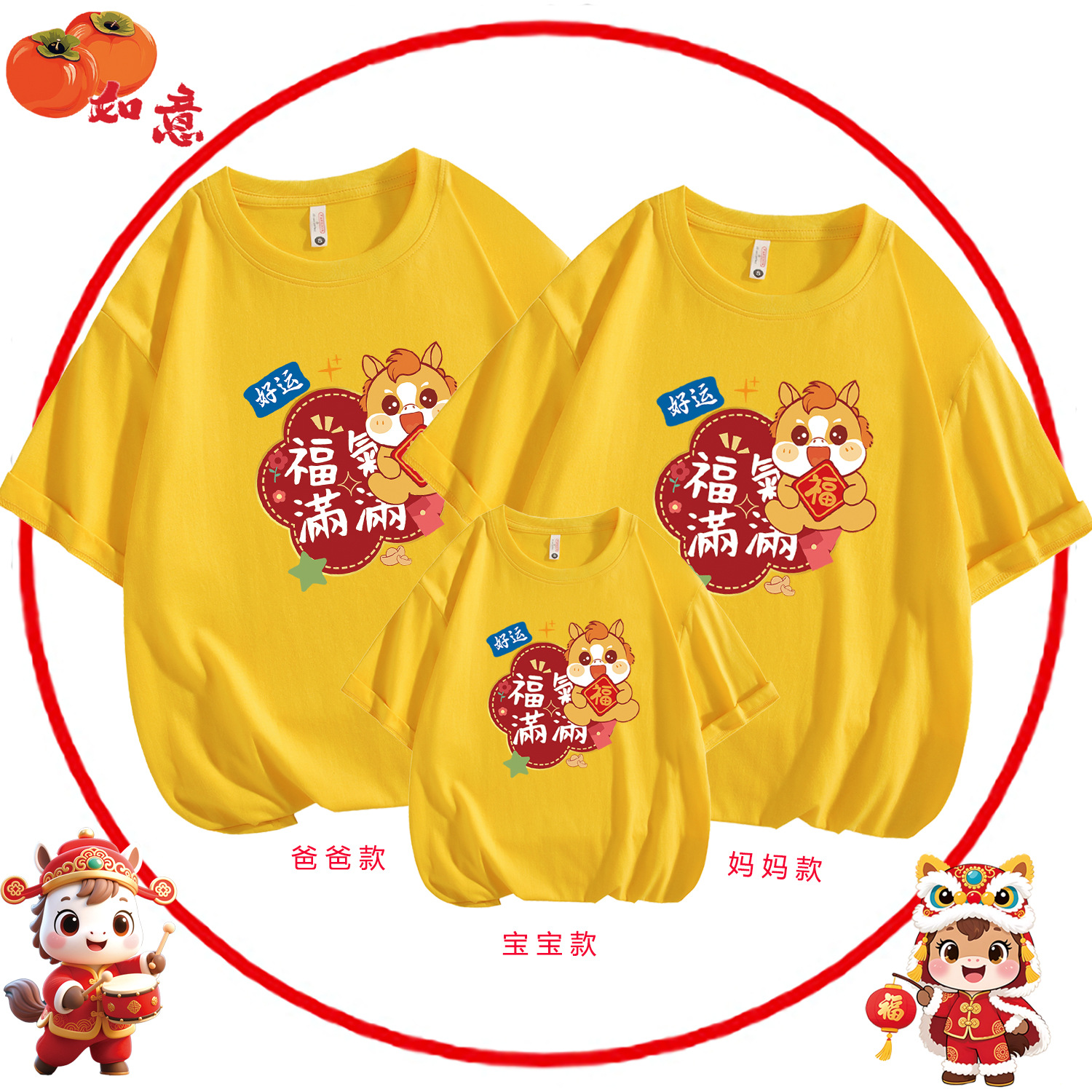 马年福气满满短袖亲子装一家三口母子装元旦活动t恤前程似锦班服