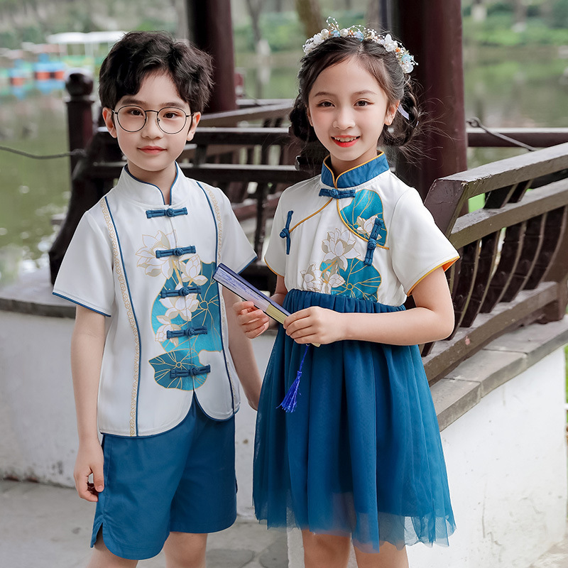 Siswa sekolah dasar pakaian taman kanak-kanak Cina musim panas pakaian kelas anak-anak baru Hanfu pakaian penampilan 61 gaya etnik