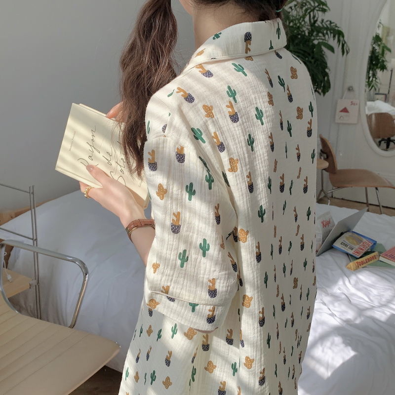 梭织纱布睡衣女夏季短袖套装可爱学生高级感开衫家居服网红可外穿