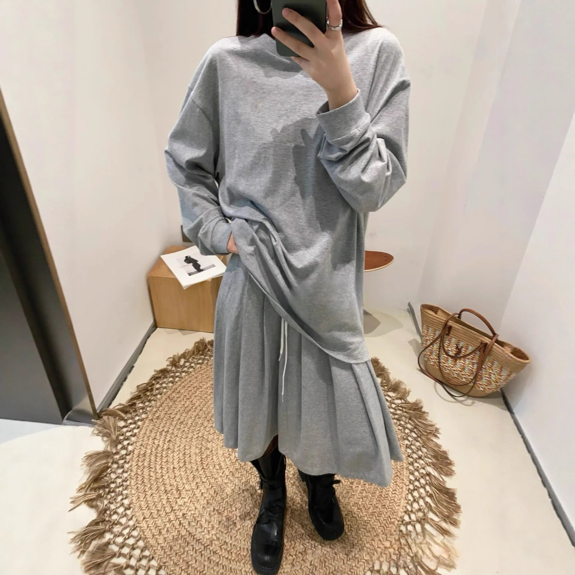 时髦松弛宽松休闲长袖T恤百褶半身裙两件套卫衣套装女5330/5331