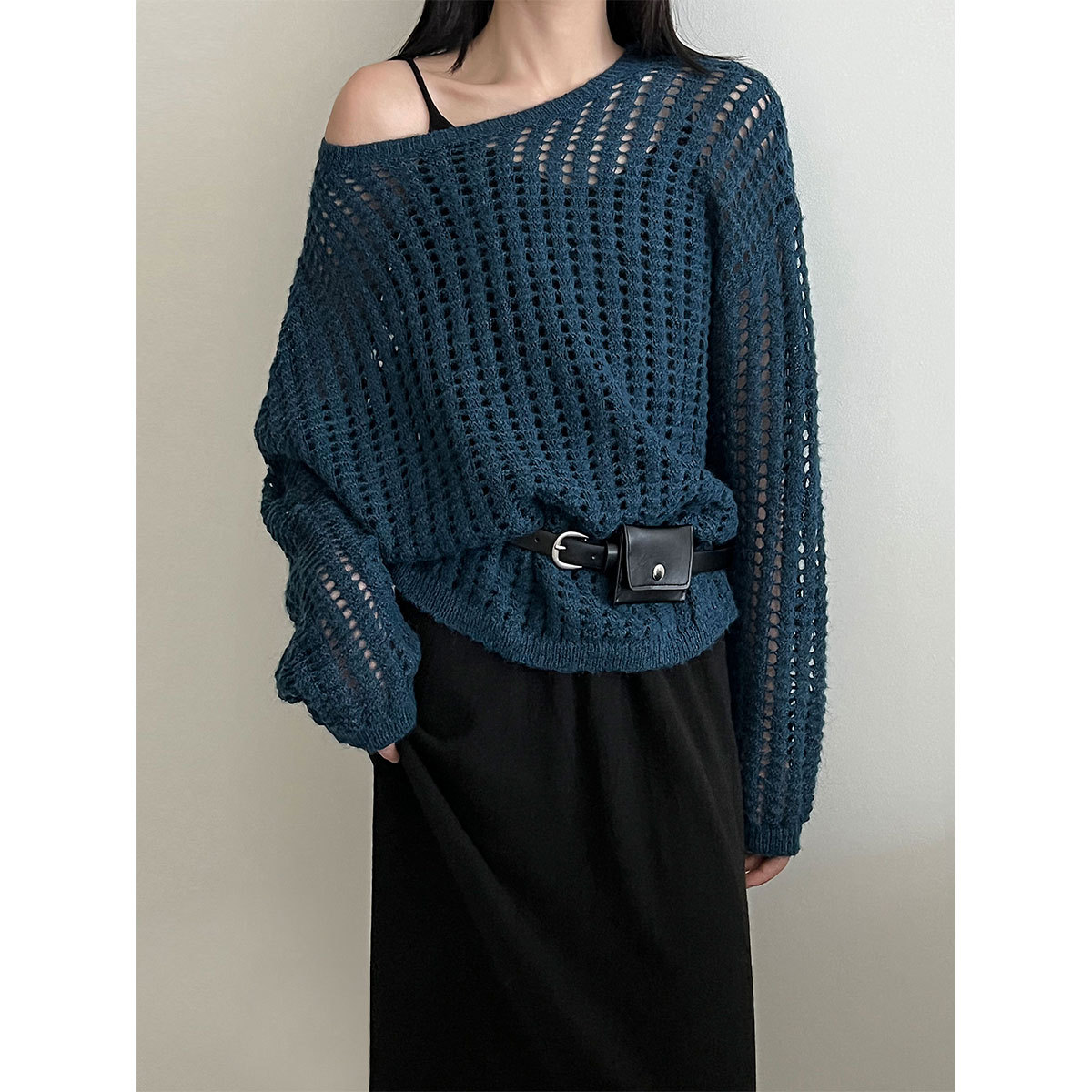 Sweater Pullover Lengan Panjang Asimetris Kerah Miring Kerah Murni